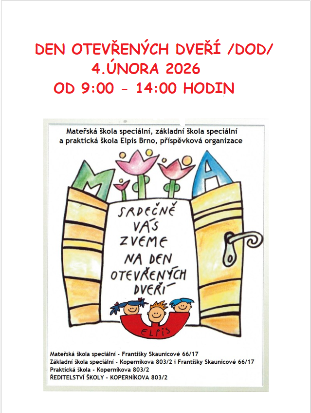 Den otevřených dveří 10. 11. 2025 Srdečně Vás zveme na den otevřených dveří, který se bude konat dne 4. 2. 2026 od 9.00 do 14.00 hodin.