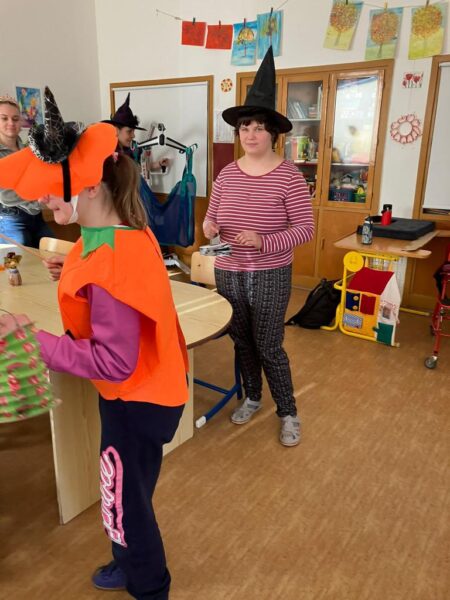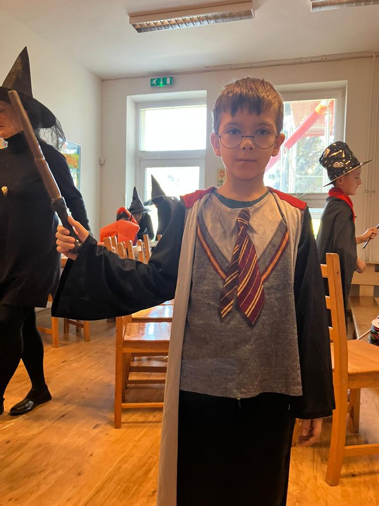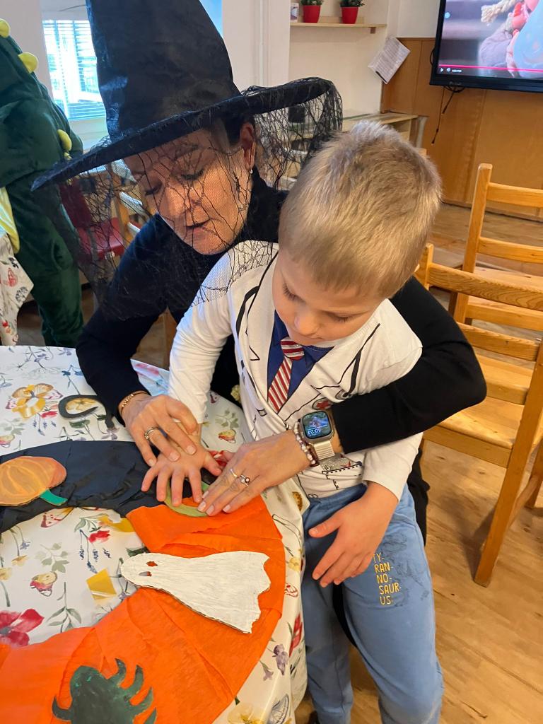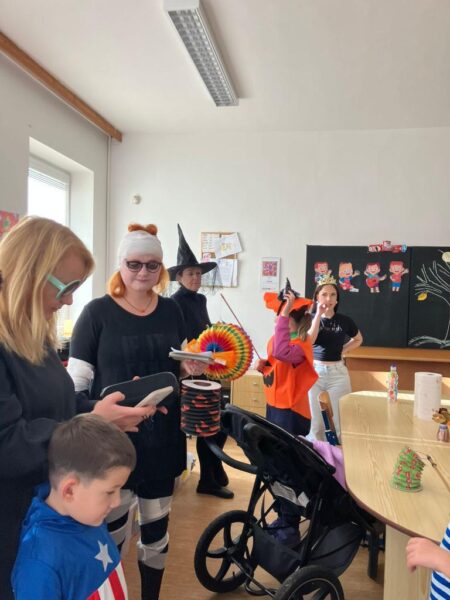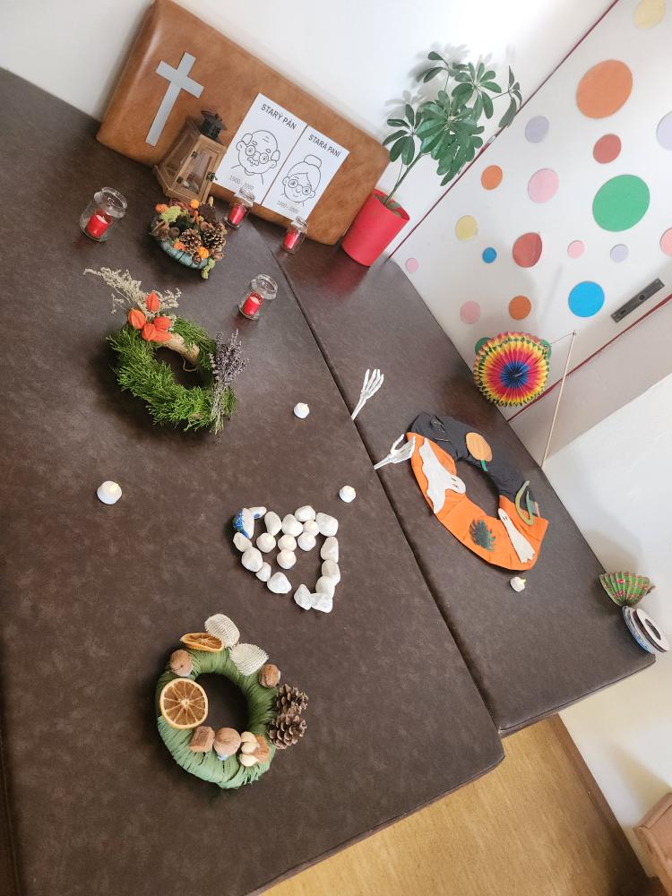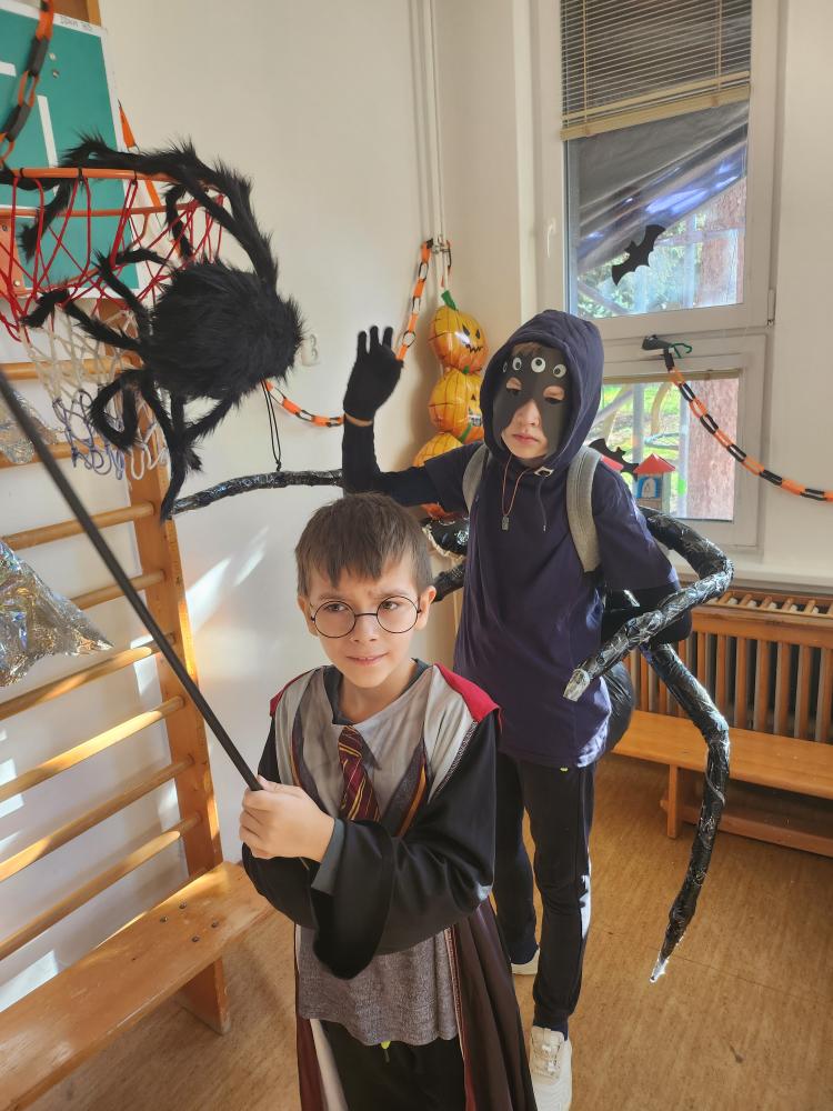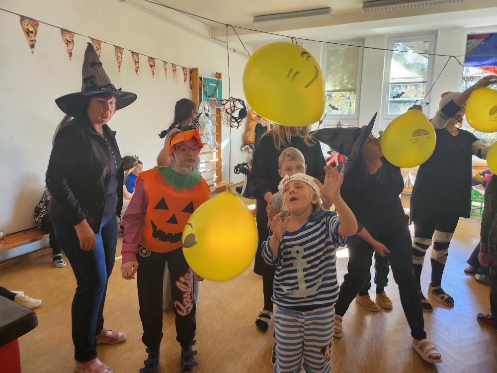 Po podzimních prázdninách jsme na budově školy na ulici Fr. Skaunicové oslavili ve strašidelných i jiných maskách keltský svátek Halloween a zároveň i náš český svátek vzpomínku na zemřelé Dušičky jsme uctili výrobou krásných věnců a symbolickým odnesením na hrob v tělocvičně. Zapálili jsme i svíčky a foukáním do balónků jsme duše zemřelých poslali do nebe. V jídelně jsme si pustili povídání o těchto svátcích a přišla za námi i paní ze ZOO Brno s hadem, což se parádně k tématu hodilo. Po škole jsme šli v průvodu i s lampióny. Akce se moc povedla a děti i my dospělí jsme si ji užili.