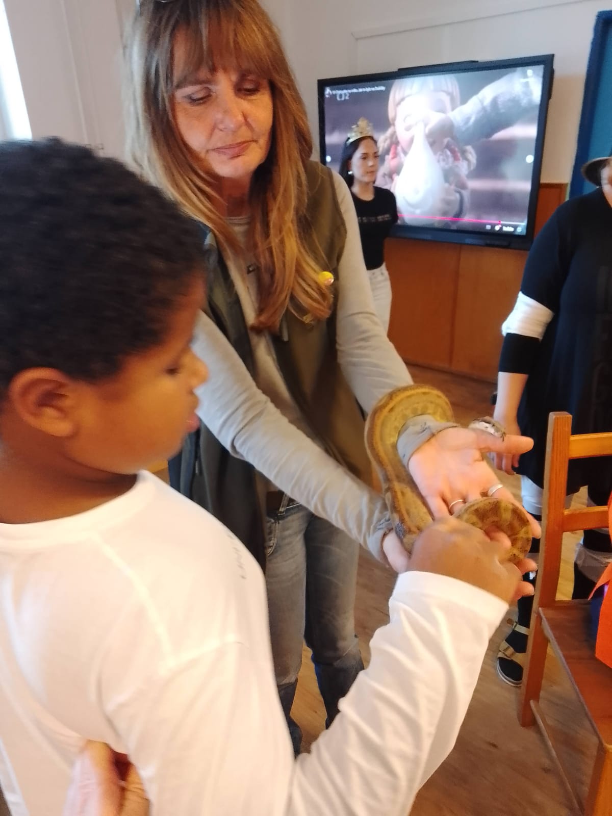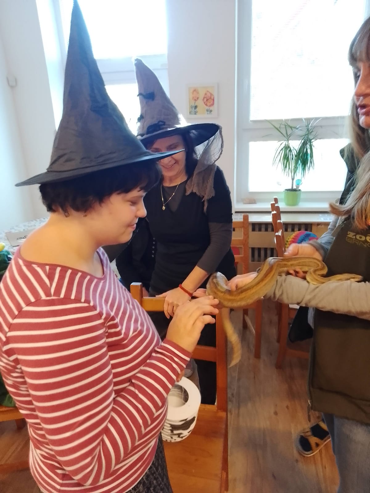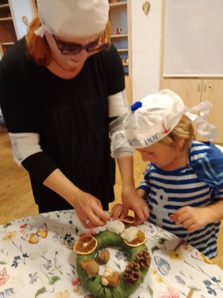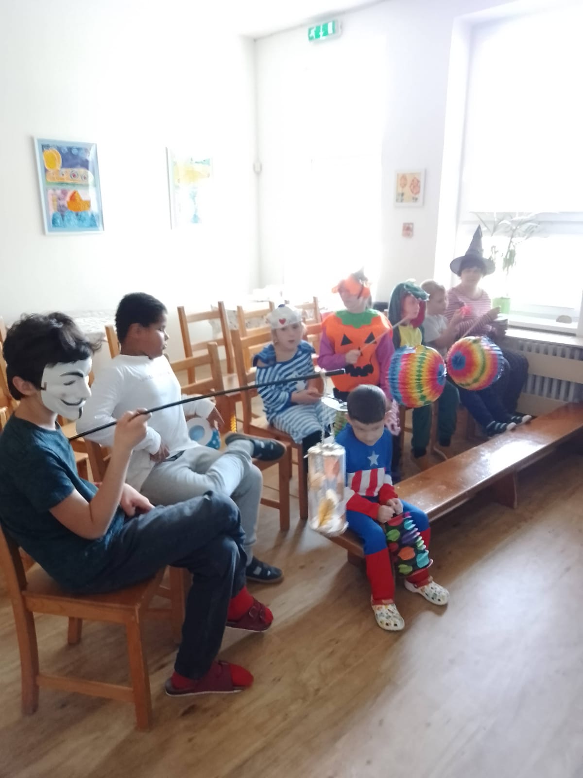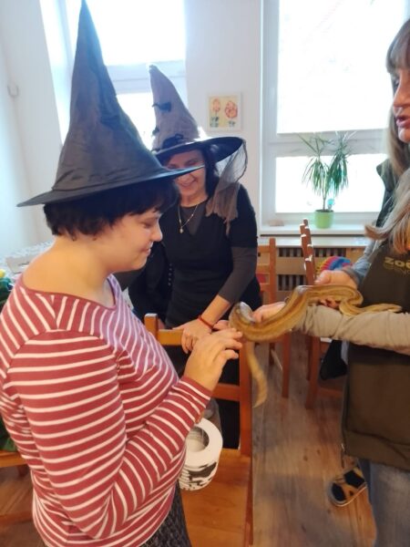 Po podzimních prázdninách jsme na budově školy na ulici Fr. Skaunicové oslavili ve strašidelných i jiných maskách keltský svátek Halloween a zároveň i náš český svátek vzpomínku na zemřelé Dušičky jsme uctili výrobou krásných věnců a symbolickým odnesením na hrob v tělocvičně. Zapálili jsme i svíčky a foukáním do balónků jsme duše zemřelých poslali do nebe. V jídelně jsme si pustili povídání o těchto svátcích a přišla za námi i paní ze ZOO Brno s hadem, což se parádně k tématu hodilo. Po škole jsme šli v průvodu i s lampióny. Akce se moc povedla a děti i my dospělí jsme si ji užili.