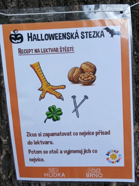 23. 10. 2025 jsme se vydali (4. VVS – internát) na Halloweenskou stezku, která se nacházela v parku pod hradem Špilberk. V parku bylo plno stanovišť, kde se plnily úkoly. Míčky se sestřelovaly duchové, hledali kaštánky v trávě, létalo se na koštěti, skládali se kostry zvířat a člověka, počítali jsme nohy pavouka, skládali kočky podle velikosti a museli jsme si zapamatovat suroviny, z kterých se vaří čarovný lektvar. Odpoledne pod hradem Špilberk jsme si moc užili, i když byla ve škole velká nemocnost a bylo málo dětí.
