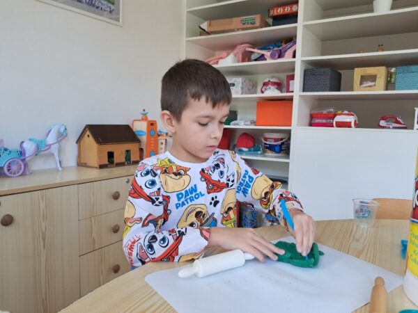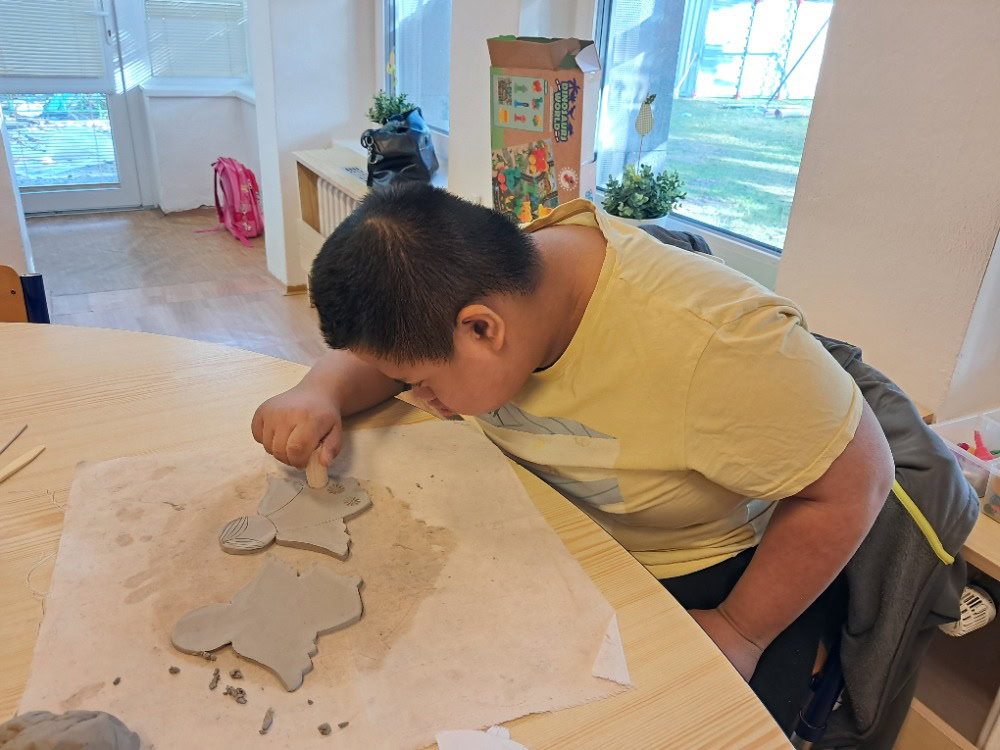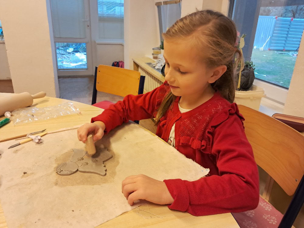 Když se na podzim zbarvily listy stromů do teplých tónů, využily jsme podzimní barvy k výtvarným činnostem a tisku přes vytvořené šablony. Několik podzimních dnů jsme se věnovali tvorbě s keramickou hlínou. Děti si vyzkoušely práci s hlínou a nakonec si pomocí dřevěných razniček ozdobily keramické andílky.