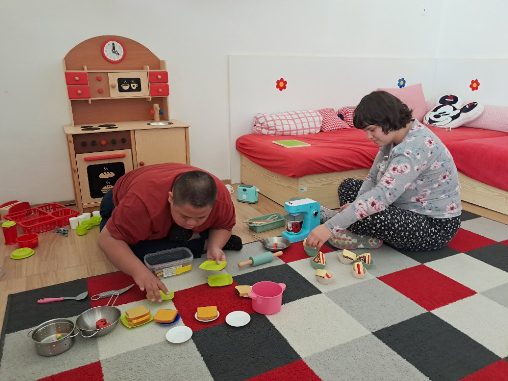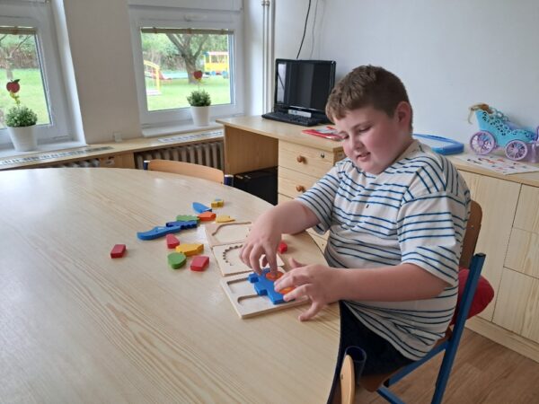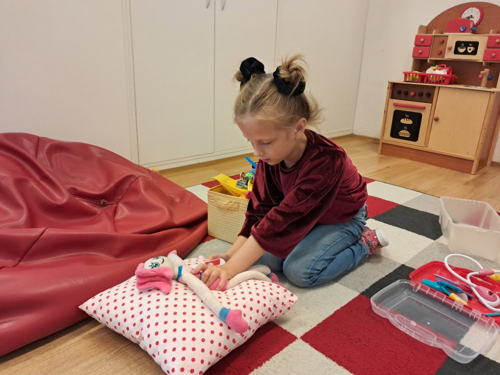 V prostorách družiny děti využívají ke hře stavebnice, pracovní listy a oblibě se těší také „vaření“ v herní kuchyňce, modelování z plasteliny, dřevěné vkládačky, puzzle či elektrický a dřevěný vláček a mnoho dalších her.