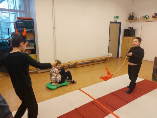 Družiny 3 a 6 na Fr. Skaunicové uspořádaly společnou tematickou akci s názvem „Rohaté úkoly“. Děti se proměnily v malé čertíky a během odpoledne plnily různé hravé, ale i trochu „pekelně“ záludné úkoly. Čertíci si vyzkoušeli slalom s pytlem plným hříšníků, při kterém museli prokázat sílu, obratnost i správný čertovský odhodlaný krok. Následovalo válení sudů po žhavých uhlících, které dětem připomínaly žíněnky a které rozesmály všechny účastníky. Na závěr si děti zasoutěžily v házení polínek do kotle, kde bylo potřeba přesné míření i trocha štěstí. Děti si úkoly užily a společně strávený čas jim přinesl dostatek pohybu i dobré nálady.