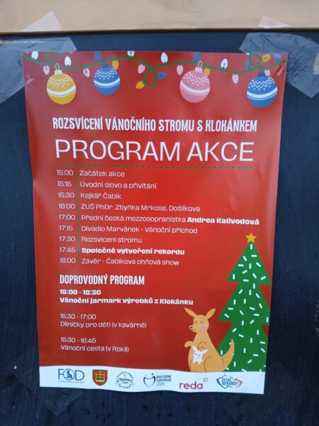 Ve čtvrtek 20. 11. 2025 jsme se zúčastnili akce “ Rozsvícení vánočního stromu s Klokánkem,“ která se konala v Líšeňské rokli. Nejdříve nás uvítal starosta Líšně a pak paní ředitelka Klokánku. Žáci si zazvonili zvonečkem a sdělili přání Ježíškovi. Prohlédli jsme si vánoční jarmark a zúčastnili se doprovodného programu. Ochutnali jsme i vánoční cukroví. Nejvíce se nám líbil kejklíř Čabík, u jehož vystoupení jsme si zazpívali a zatancovali.